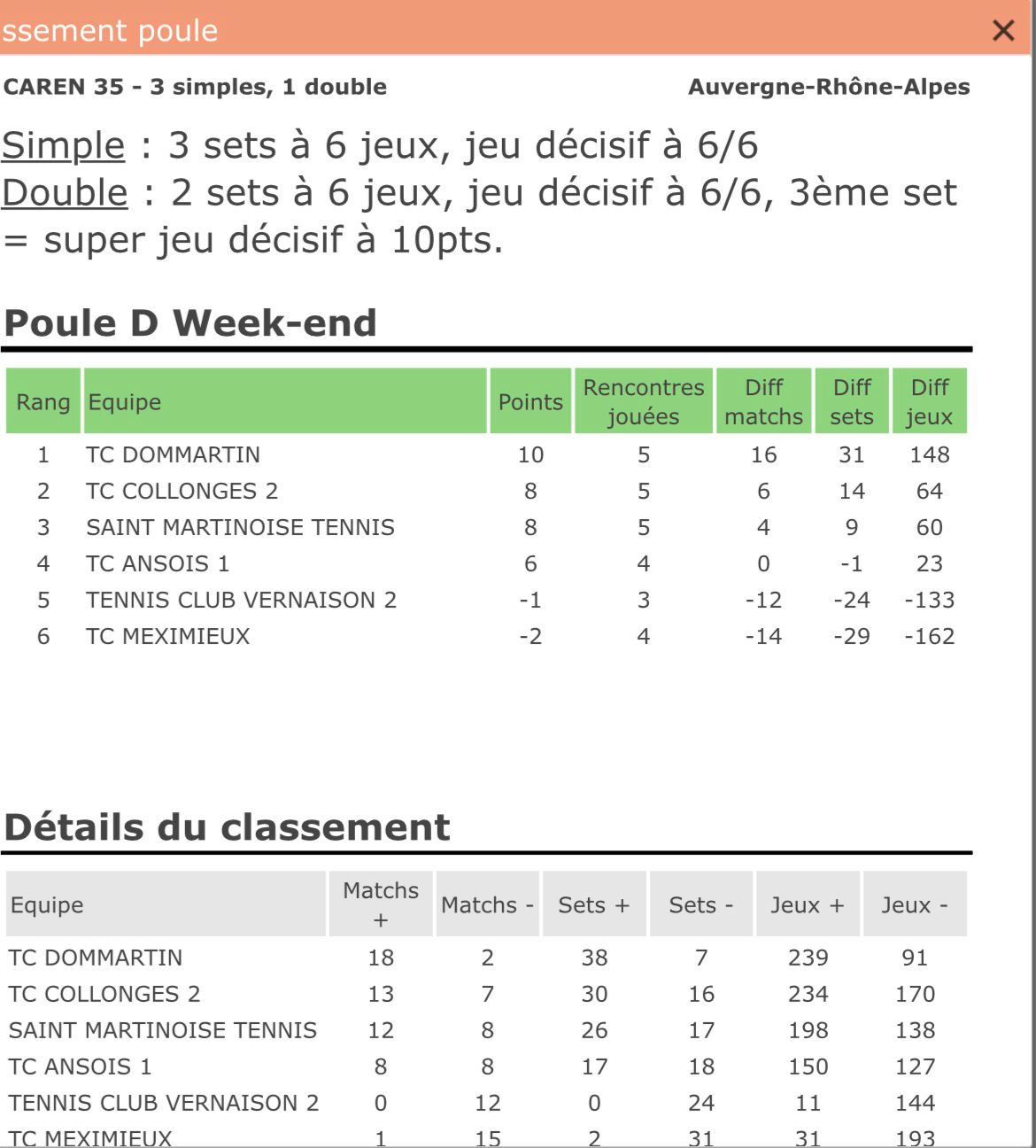 L’Equipe Homme du TCD se classe première de sa poule D au 5 Avril 2026 !
